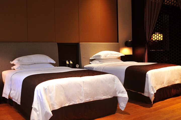 4、免費洗漱用品(6樣以上),免費瓶裝水,24小時熱水服務(wù),吹風機,雨傘、客房WIFI覆蓋免費、國內(nèi)長途電話、中央空調(diào)、普通分體空調(diào)、電熱毯、喚醒服務(wù)、電子秤、開夜床、220V電壓插座、浴衣、迷你吧、拖鞋等