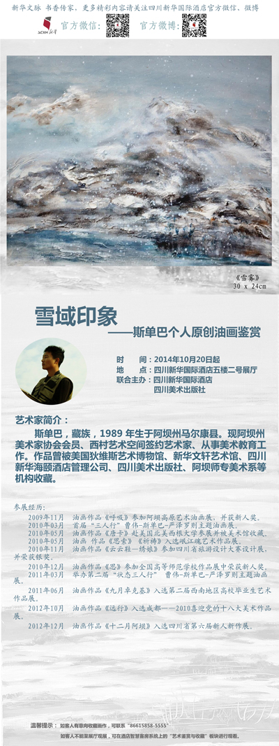 《雪域印象》斯單巴個人油畫展在新華國際酒店魅力開展