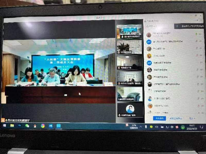 在主會場,四川省文化和旅游廳二級巡視員盧鋒、文化和旅游廳國際交流處處長蔡凌云、省林業和草原局三級調研員張倩、成華區人民政府副區長陳樞出席年會,成都大熊貓繁育研究基地、都江堰市、崇州市、邛崍市、彭州市、大邑縣、寶興縣代表參會;33個聯盟理事和成員單位近50位代表通過騰訊會議的方式在分會場參會。