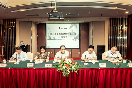 6月19日下午,新華海頤酒店公司在新華國際酒店5樓1號會議室召開干部大會。會議由公司副總經(jīng)理朱世海主持。集團人力資源開發(fā)部羅文琦主任宣布任職決定,聘彭猛同志擔任四川新華海頤酒店公司董事、總經(jīng)理,彭永斌同志不再擔任新華海頤酒店公司董事、總經(jīng)理和新華國際酒店總經(jīng)理。會上彭永斌、彭猛同志分別作了表態(tài)發(fā)言。